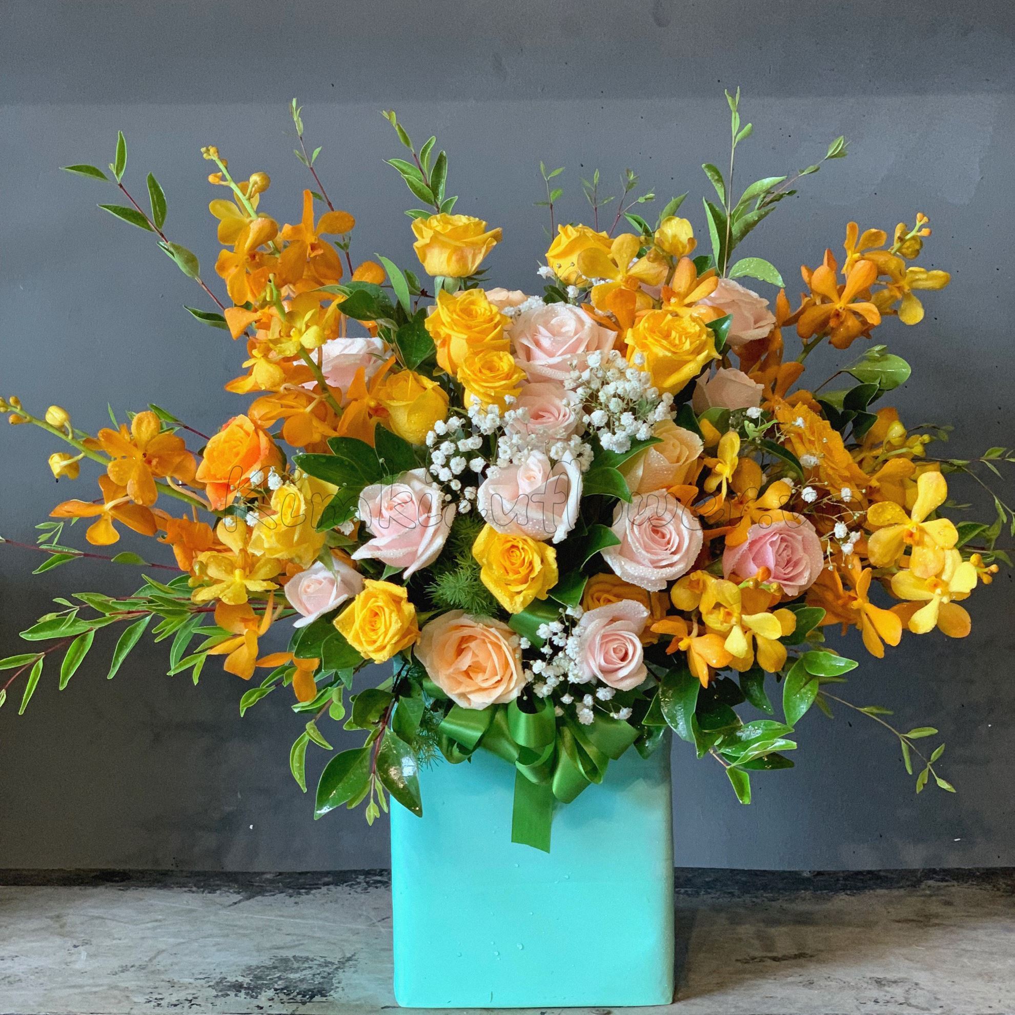 Lẵng hoa hồng vàng, lan vàng- HG119