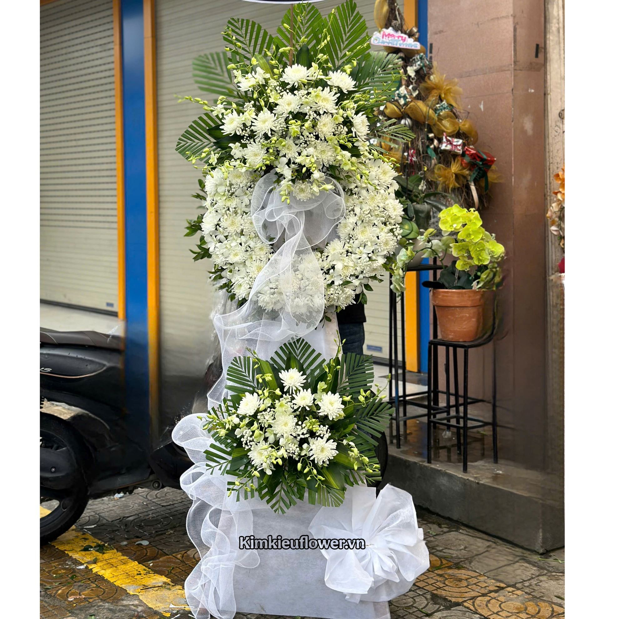 Vòng hoa chia buồn cúc trắng mix lan trắng - KV315