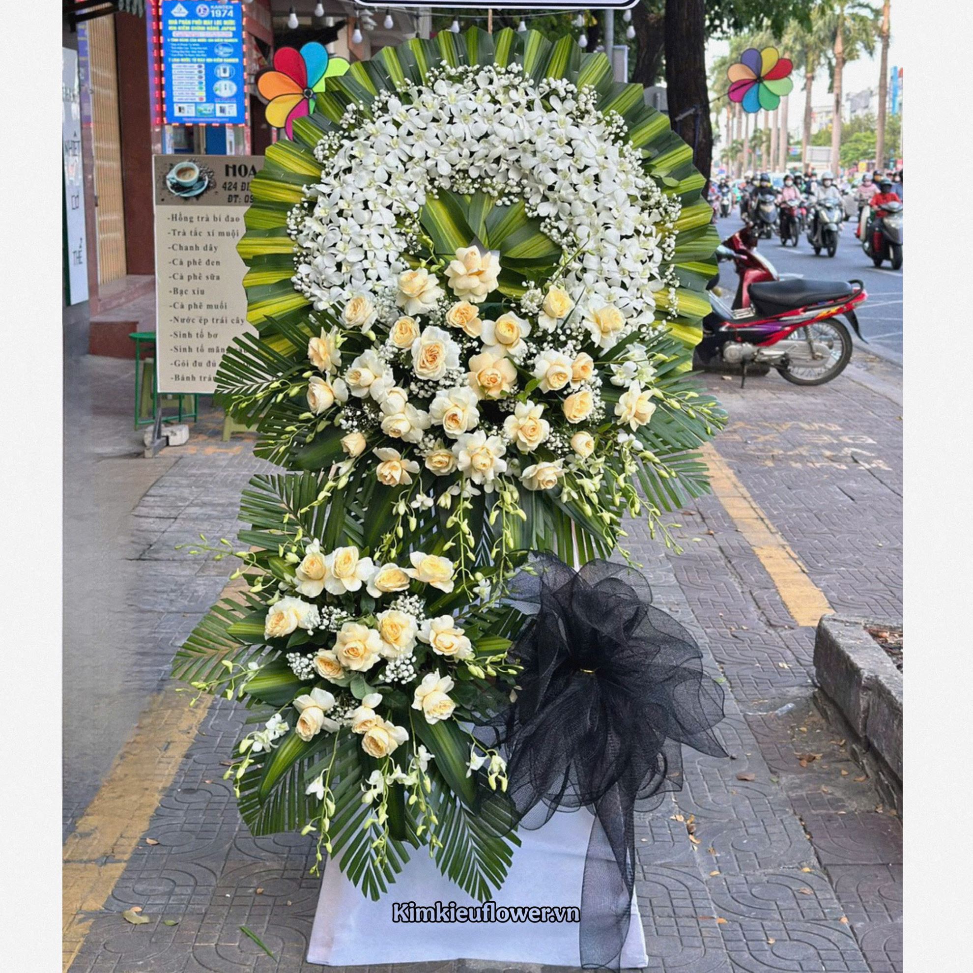 Vòng hoa chia buồn lan trắng mix hồng victo - KV324