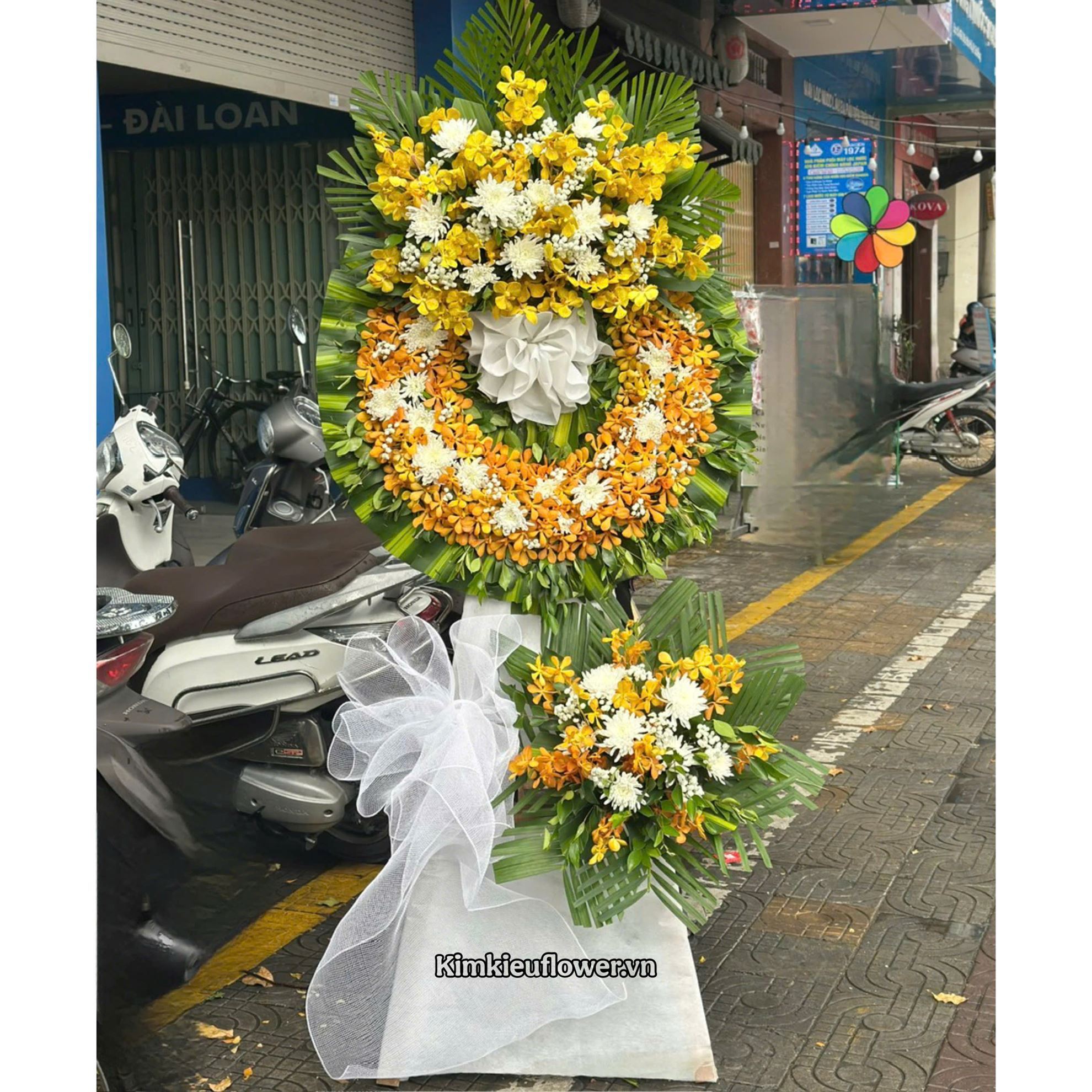 Vòng hoa chia buồn lan vàng mix cúc trắng - KV323
