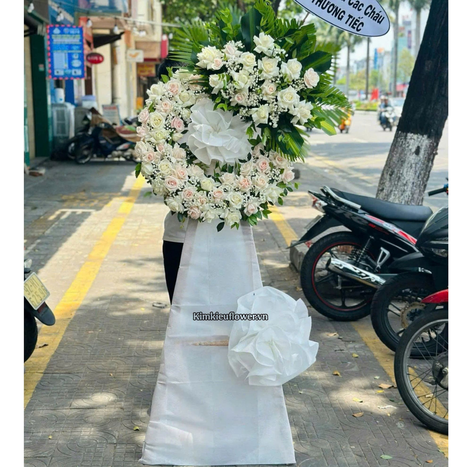 Mẫu KV295 gồm các loại hoa: + hồng trắng + hồng kem + và các lá phụ khác - Liên hệ KIM KIỀU FLOWER để tư vấn thiết kế mẫu hoa theo yêu cầu bạn nhé!