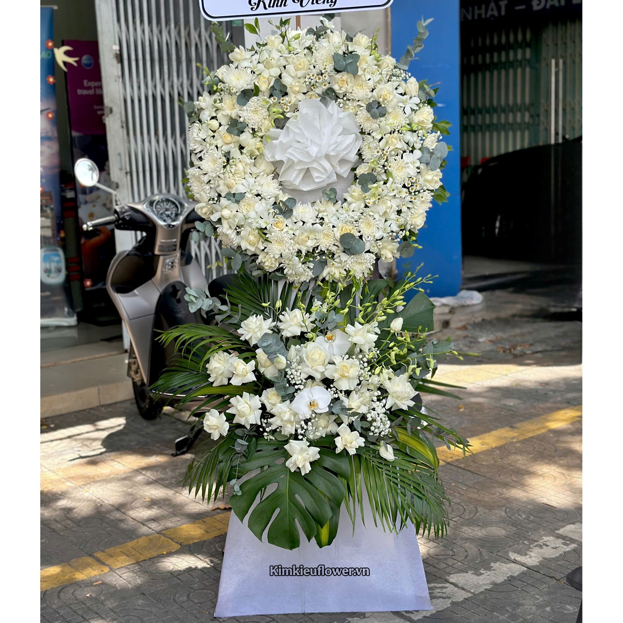 Vòng hoa chia buồn tone trắng mix lan hồ điệp - KV326