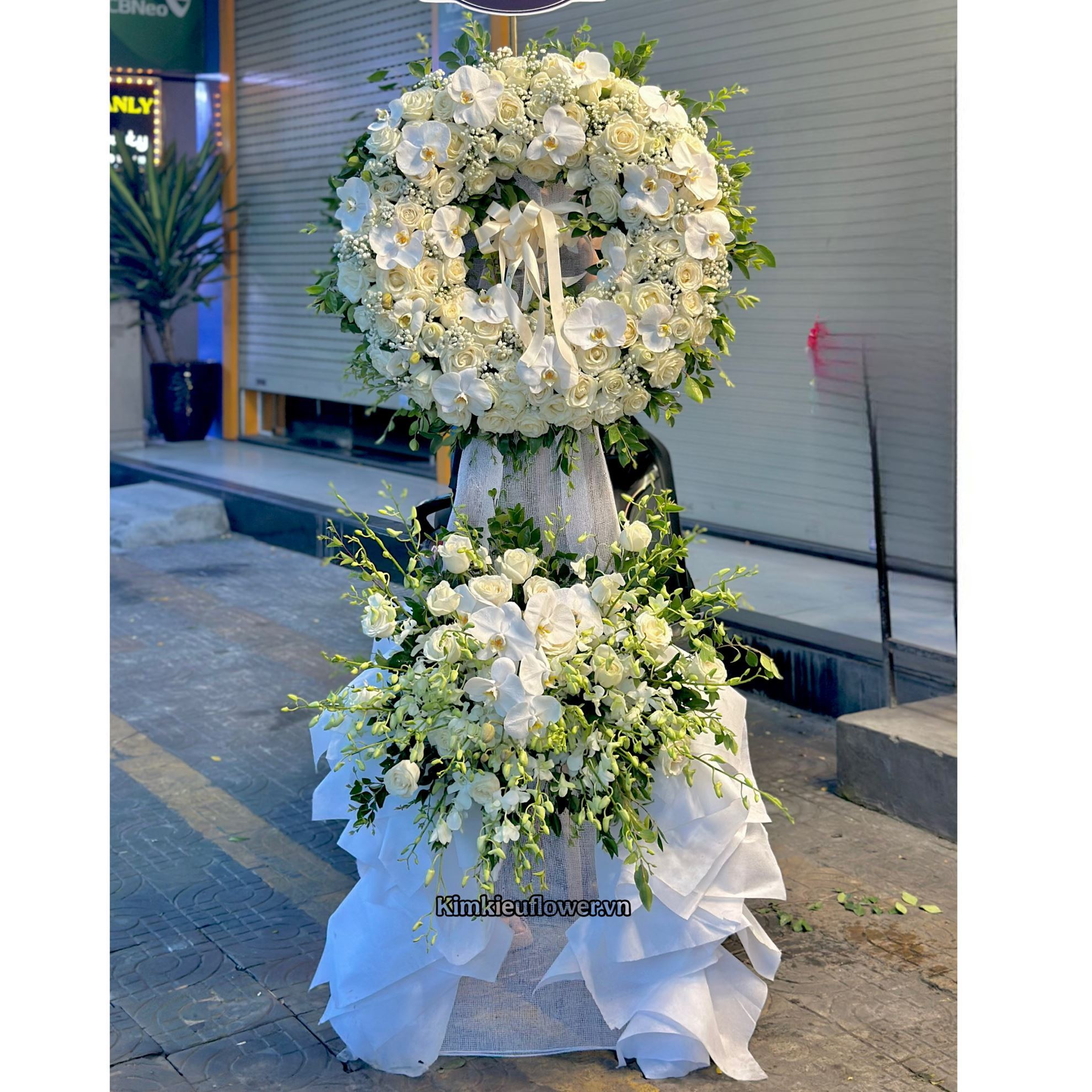 Mẫu KV342 gồm các loại hoa: + Hồng trắng + Lan hồ điệp + và các lá phụ khác - Liên hệ KIM KIỀU FLOWER để tư vấn thiết kế mẫu hoa theo yêu cầu bạn nhé!