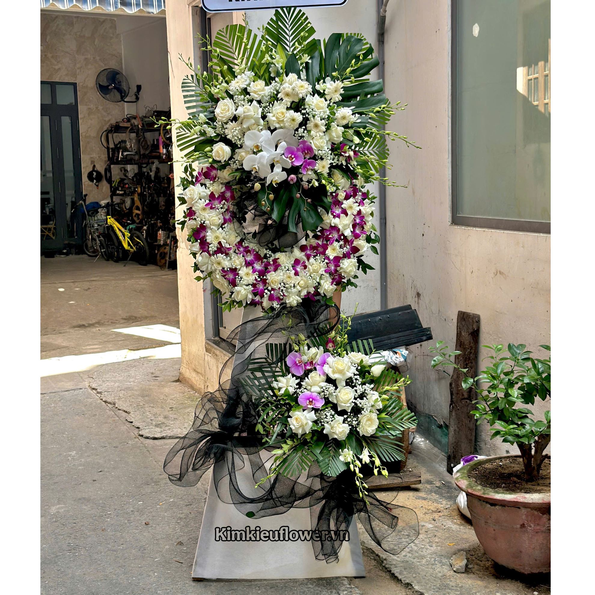 Vòng hoa chia buồn tone trắng tím, mix lan hồ điệp - KV287