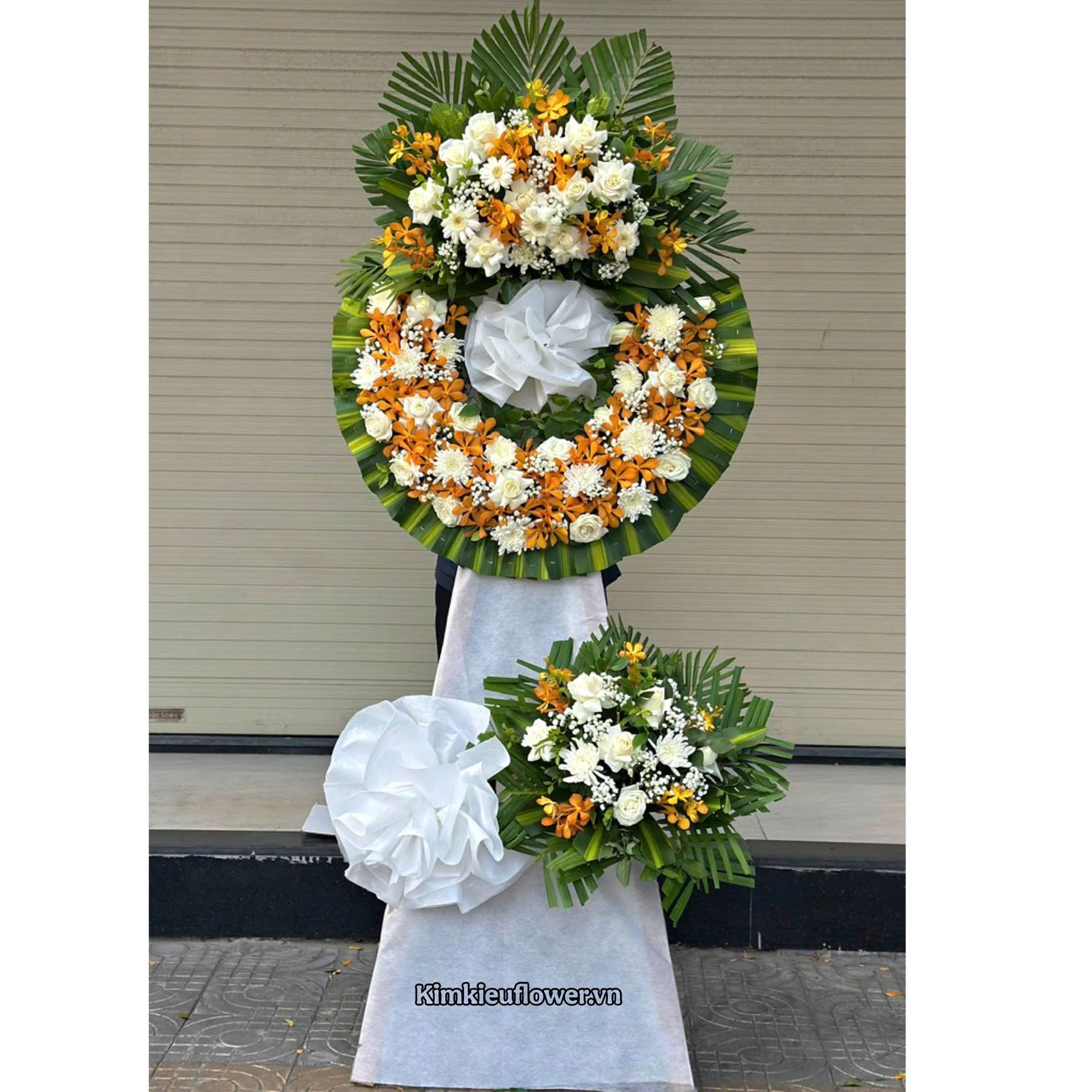 Vòng hoa chia buồn tone trắng vàng - KV285