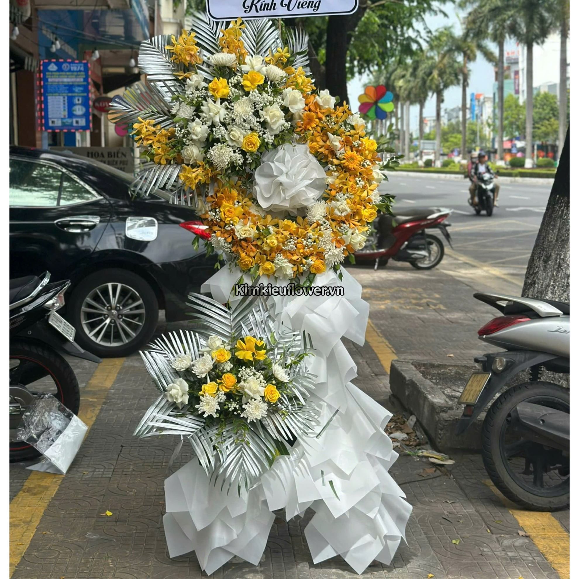 Vòng hoa chia buồn tone vàng trắng - KV294