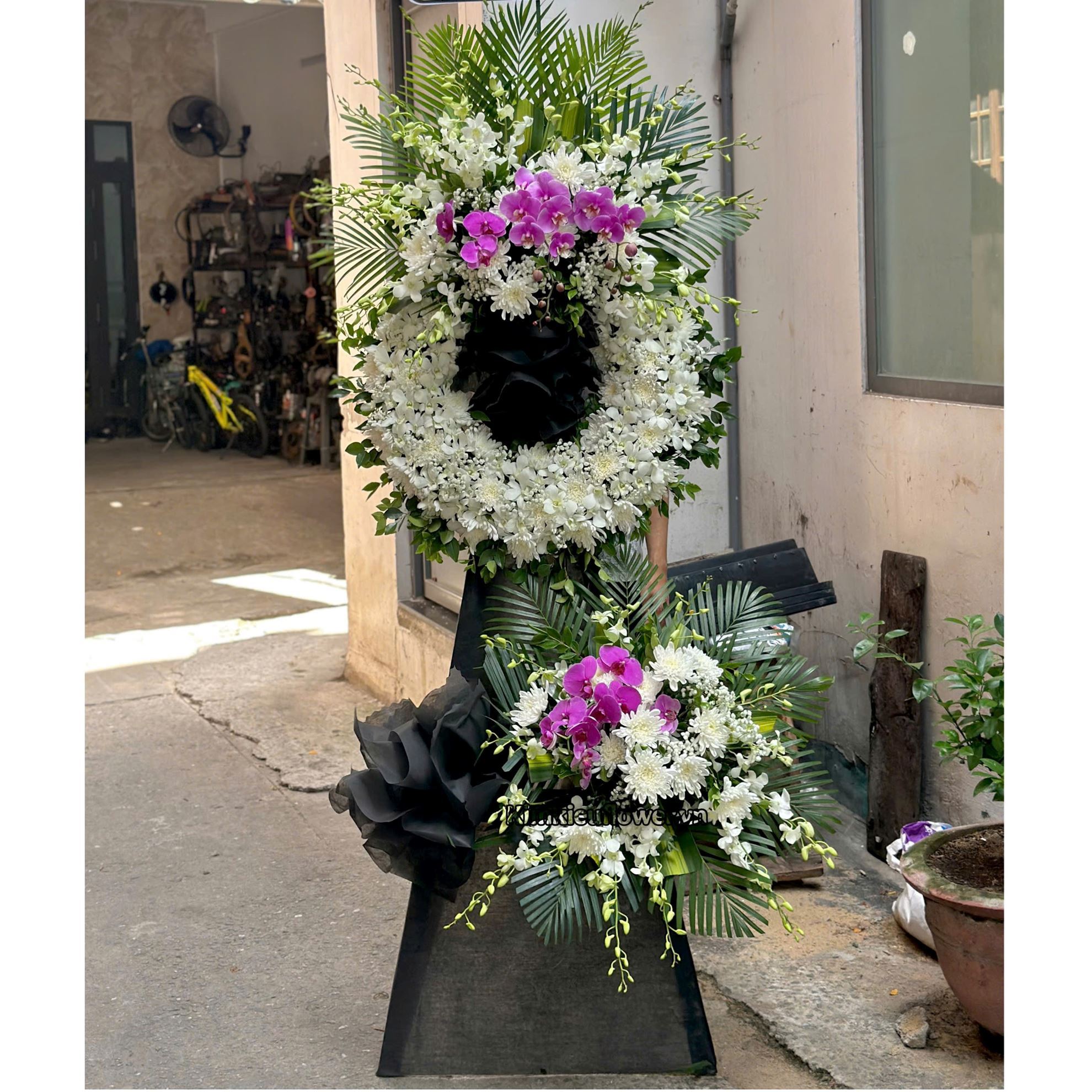 Vòng hoa cúc trắng mix lan hồ điệp tím - KV296