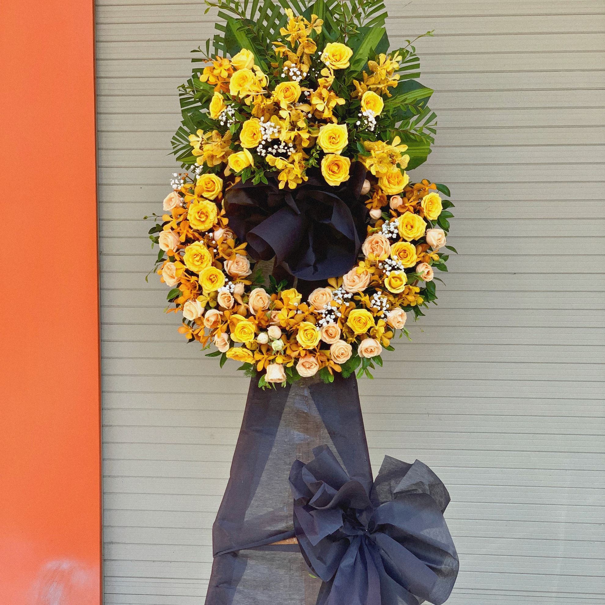 Mẫu KV34 gồm các loại hoa: + hoa hồng vàng + hoa hồng mỡ gà + và các hoa,lá phụ khác- Liên hệ KIM KIỀU FLOWER để tư vấn thiết kế mẫu hoa theo yêu cầu bạn nhé!