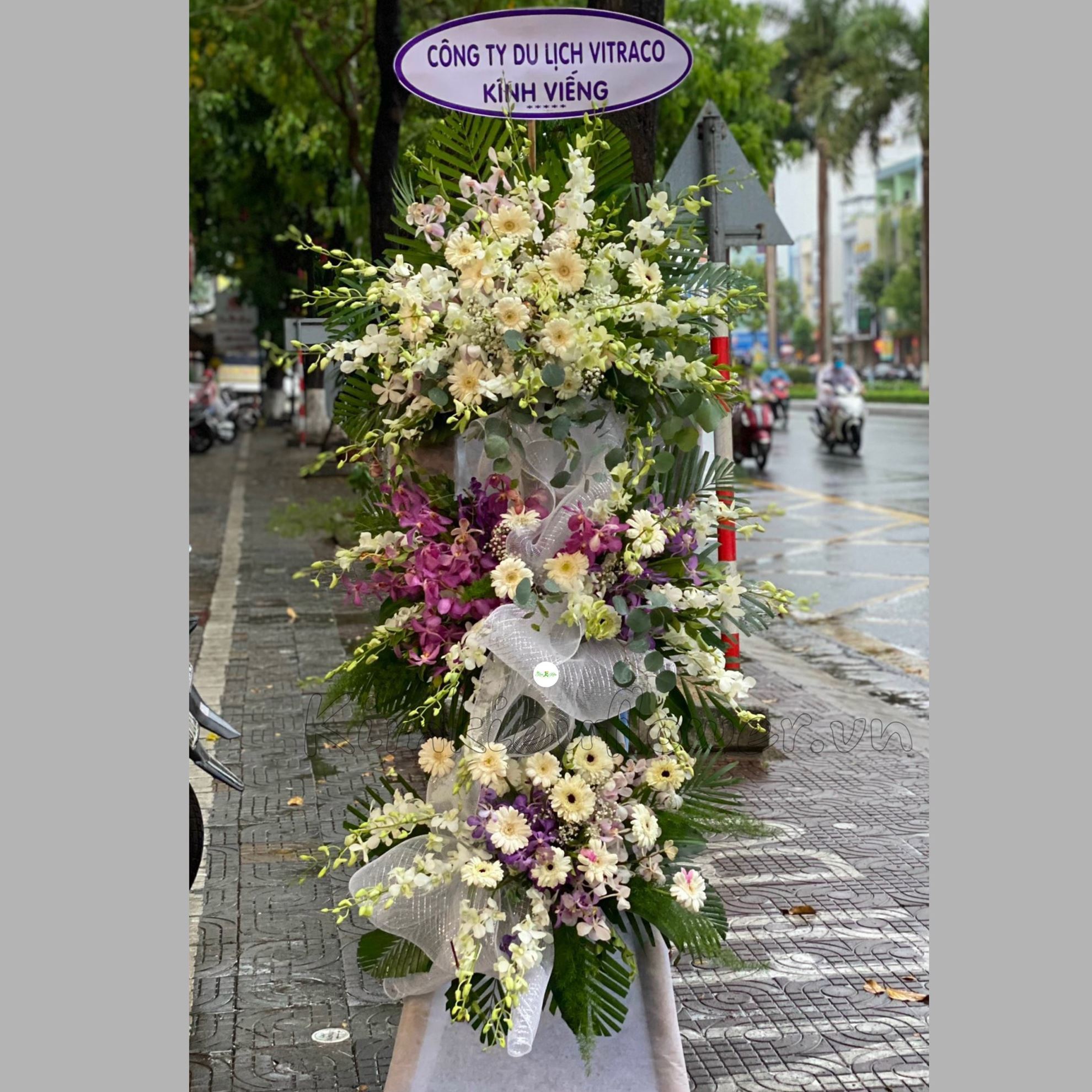 Mẫu KV84 gồm các loại hoa: + lan trắng + lan tím + đồng tiền nhí + và các hoa,lá phụ khác- Liên hệ KIM KIỀU FLOWER để tư vấn thiết kế mẫu hoa theo yêu cầu bạn nhé!