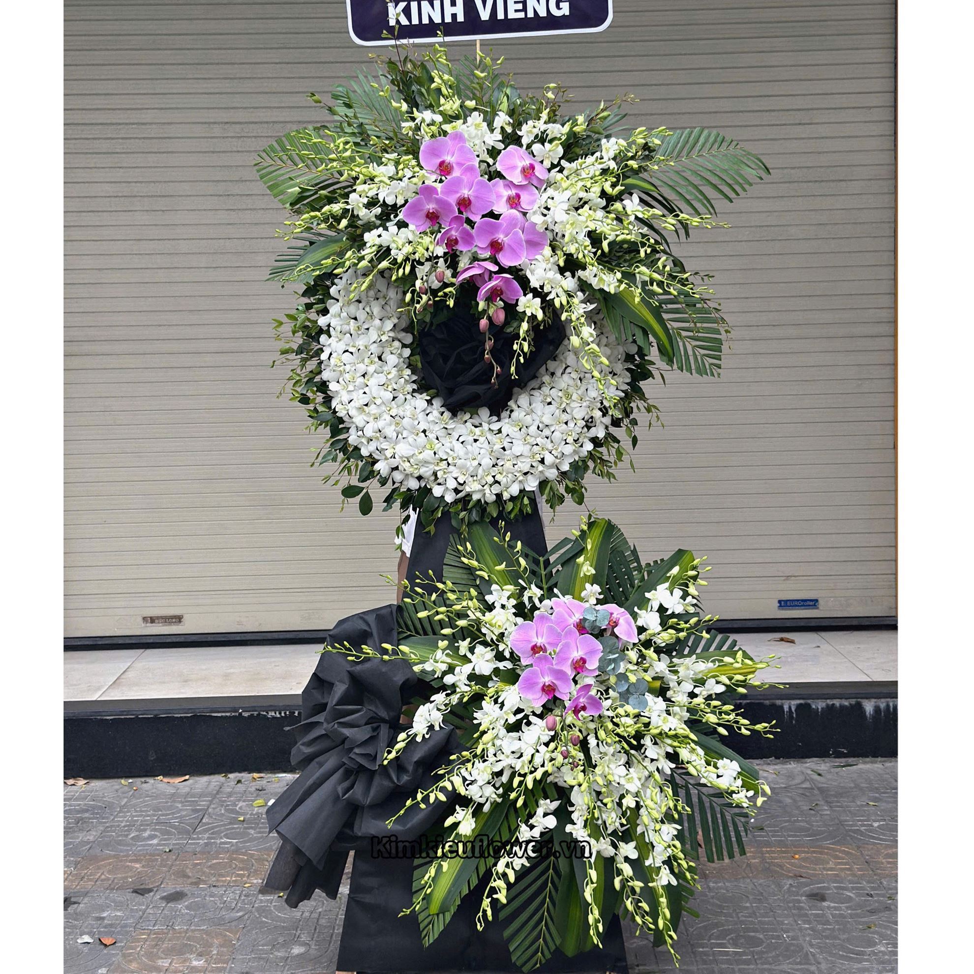 Mẫu KV274 gồm các loại hoa: + Lan trắng + Lan hồ điệp tím + và các lá phụ khác - Liên hệ KIM KIỀU FLOWER để tư vấn thiết kế mẫu hoa theo yêu cầu bạn nhé!