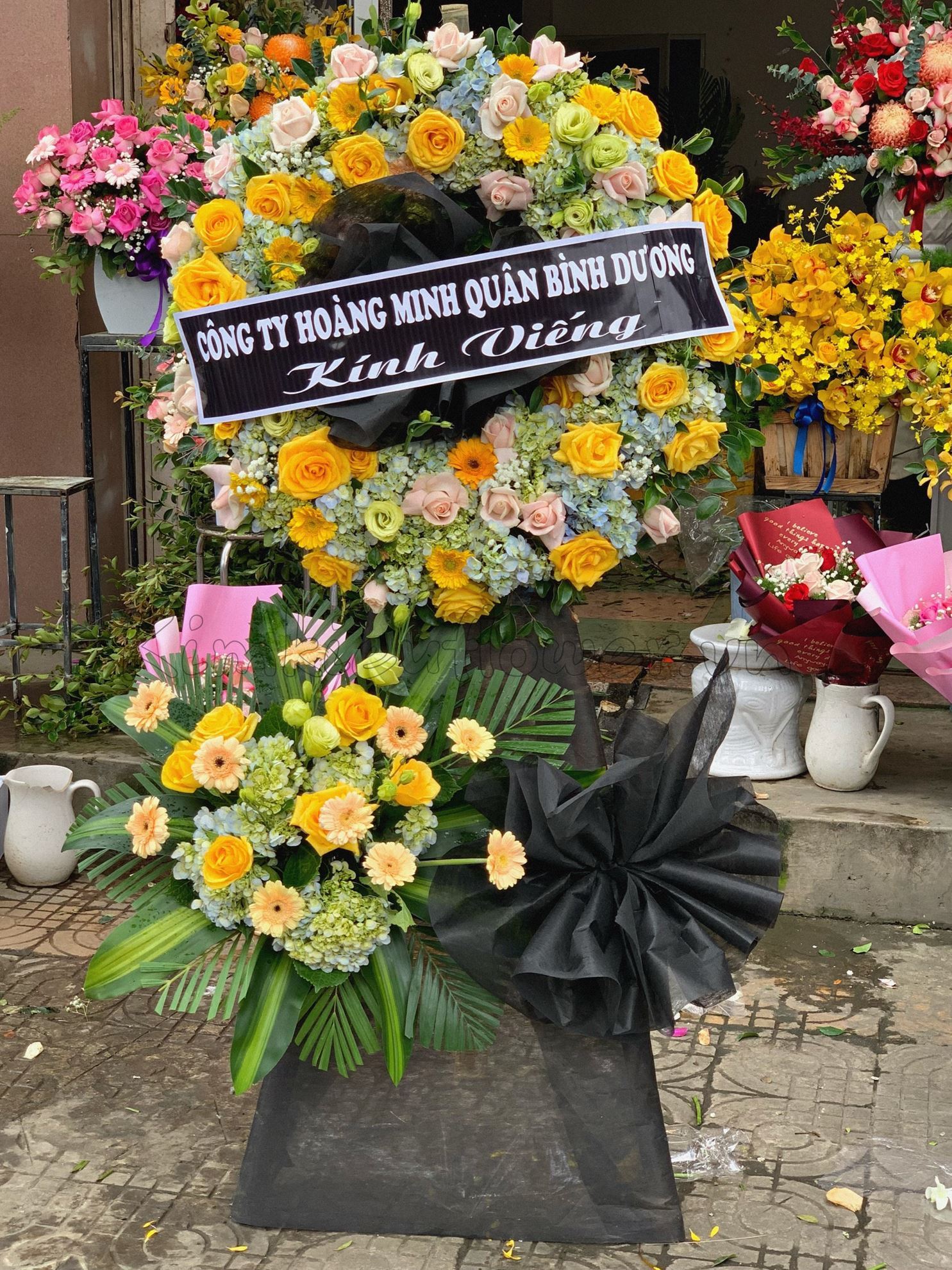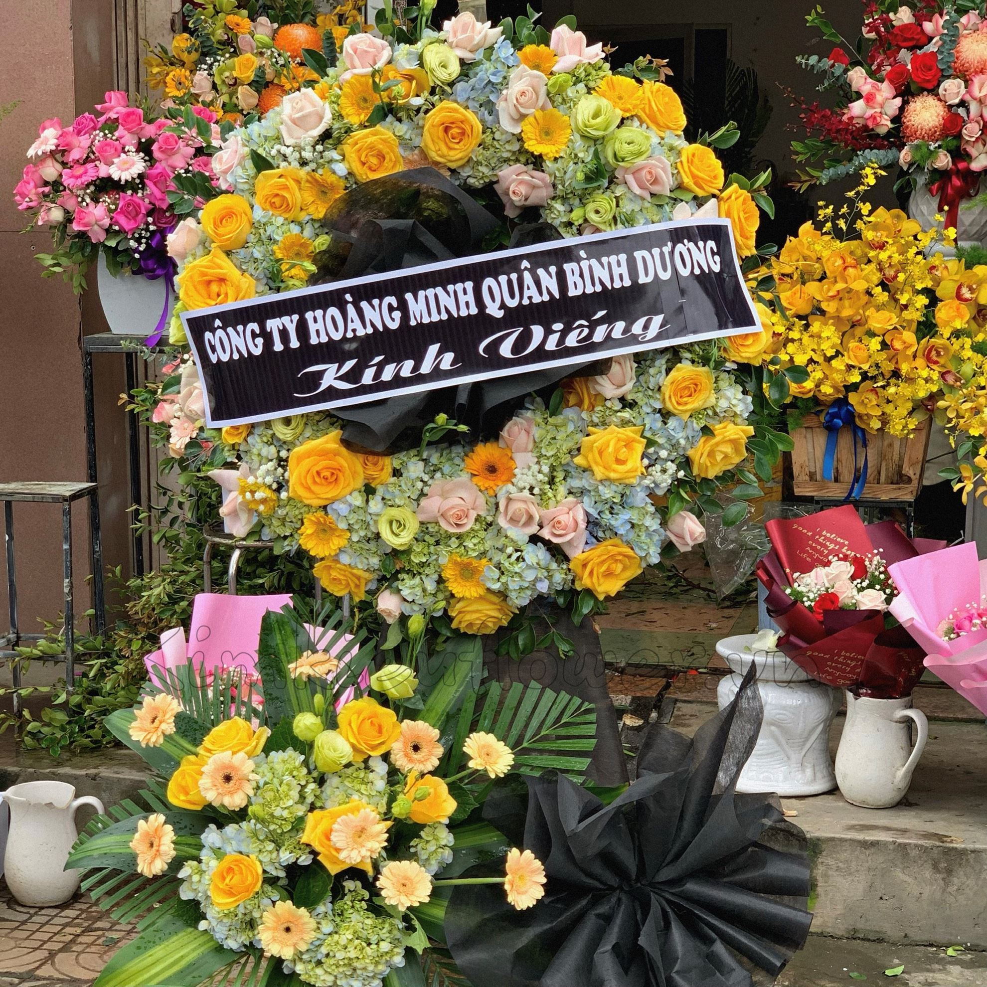 Vòng hoa viếng cẩm tú cầu, hồng vàng - KV57
