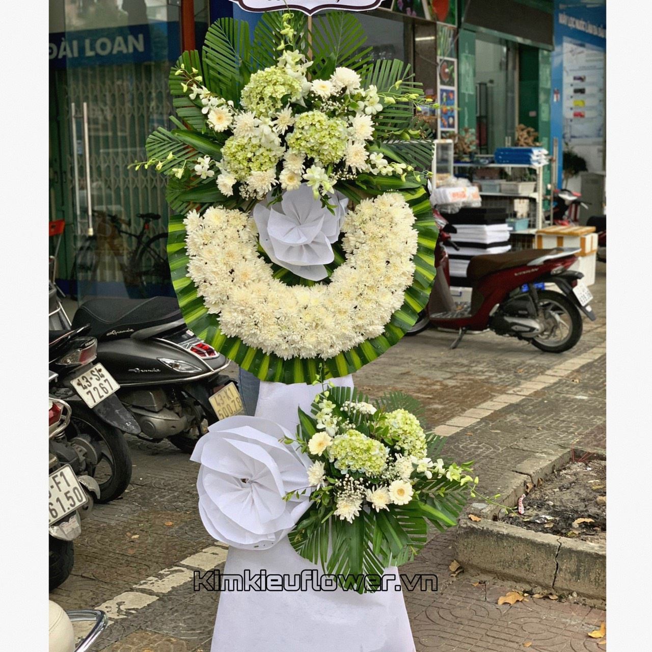 Vòng hoa viếng cúc trắng, cẩm tú cầu - KV135