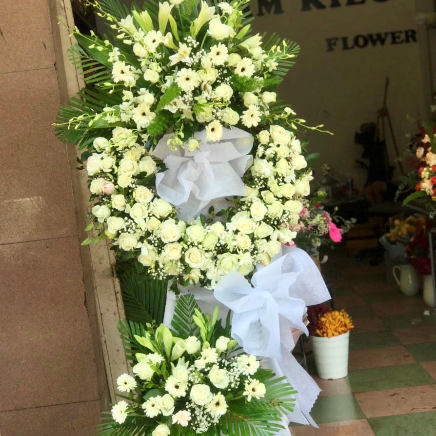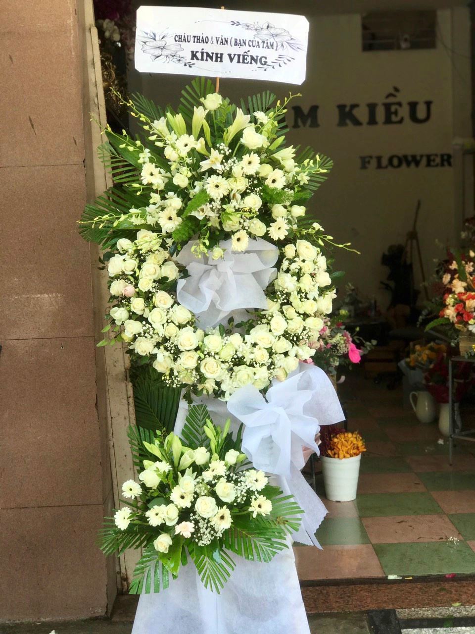 Mẫu KV12: Gửi lời thành kính đến người đã an nghỉ bằng những đoá hoa đẹp nhất đến từ KIM KIỀU FLOWER. Kệ hoa này được bao phủ bởi những cánh cánh hồng và đồng tiền trắng nhẹ nhàng, tinh tế, mà mang mác buồn như tiếng sóng biển du dương một buổi chiều vắng. - Mẫu KV12 gồm các loại hoa: + hoa hồng trắng + hoa đồng tiền trắng + lan trắng + và các hoa,lá phụ khác - Liên hệ KIM KIỀU FLOWER để tư vấn thiết kế mẫu hoa theo yêu cầu bạn nhé!
