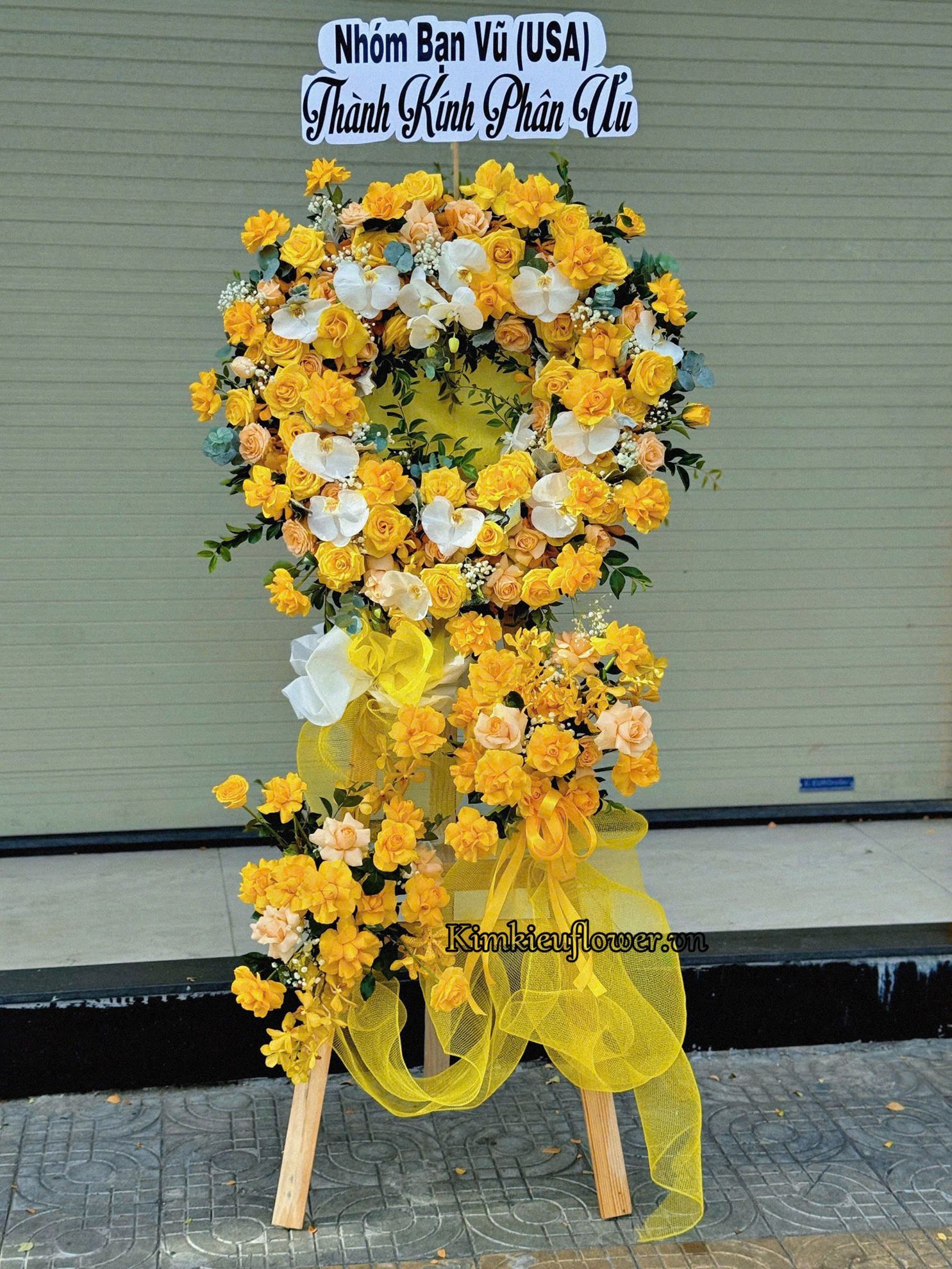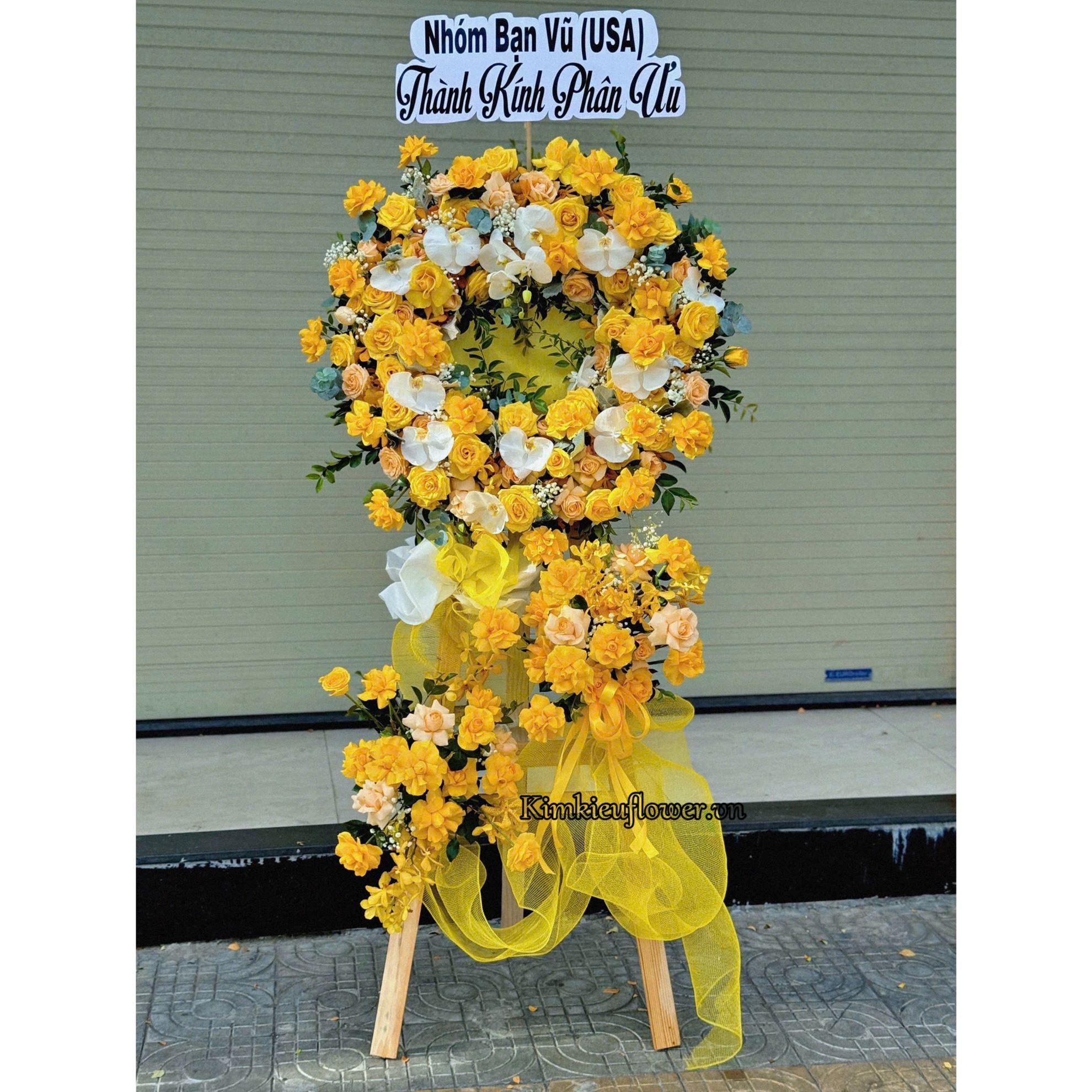 Vòng hoa viếng hoa hồng vàng mix hồ điệp trắng - KV251