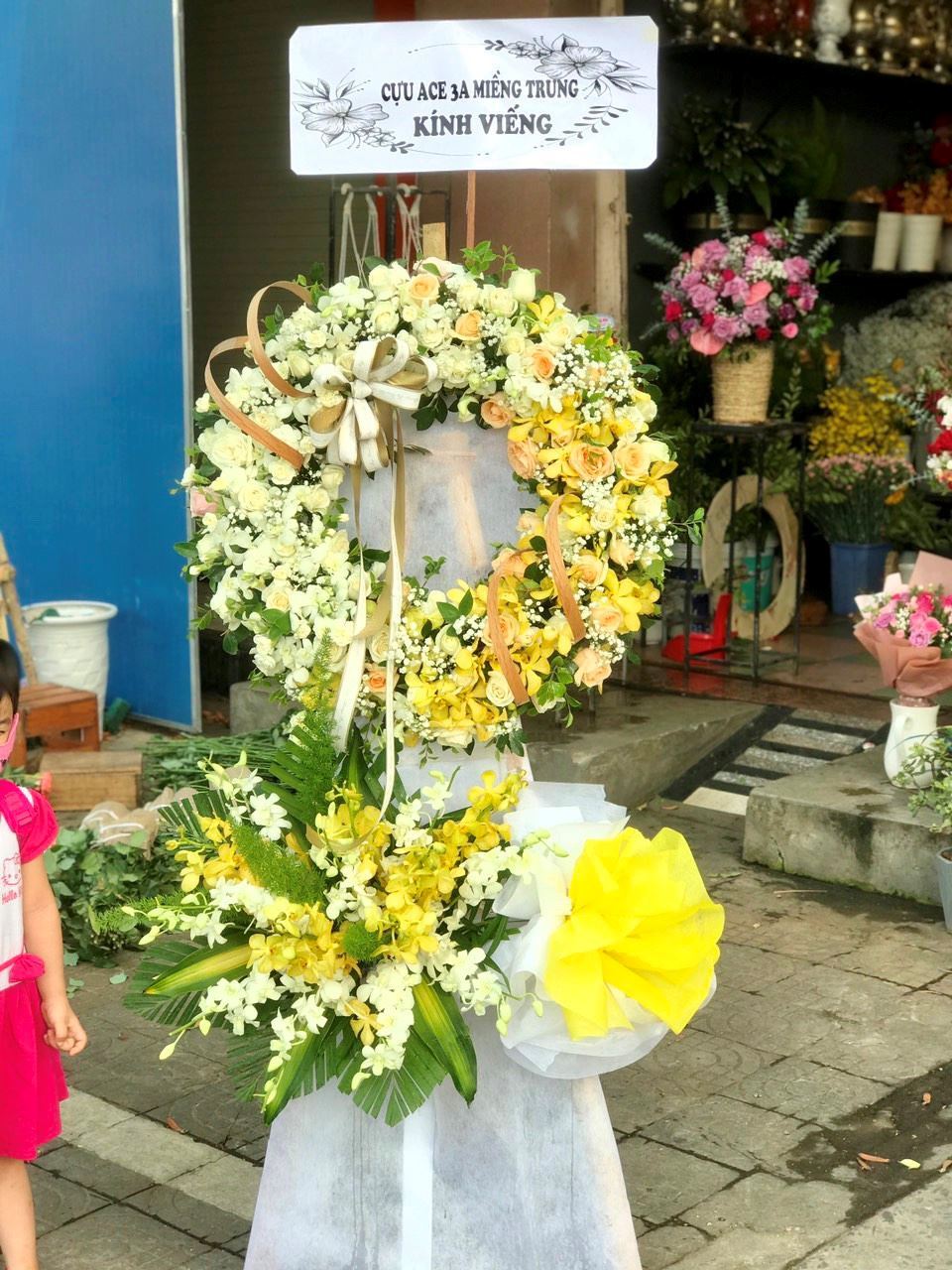 Vòng hoa viếng hoa hồng vàng,trắng- KV25