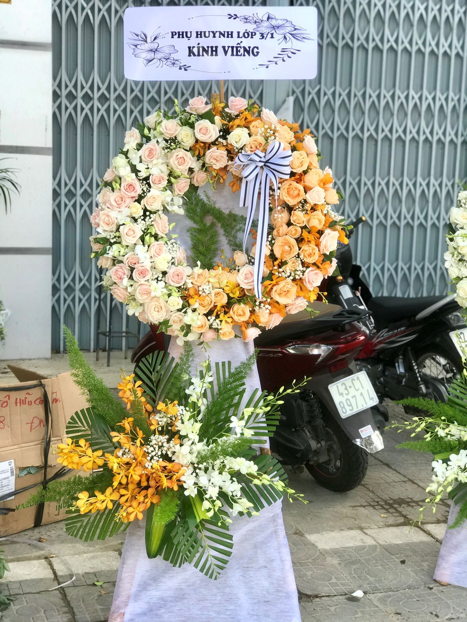 Vòng hoa viếng hoan hồng,lan vàng- KV04