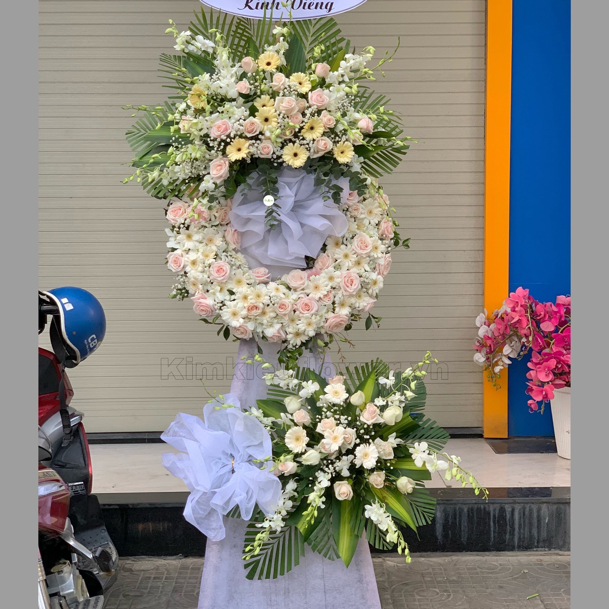 Vòng hoa viếng hồng kem, đồng tiền - KV109