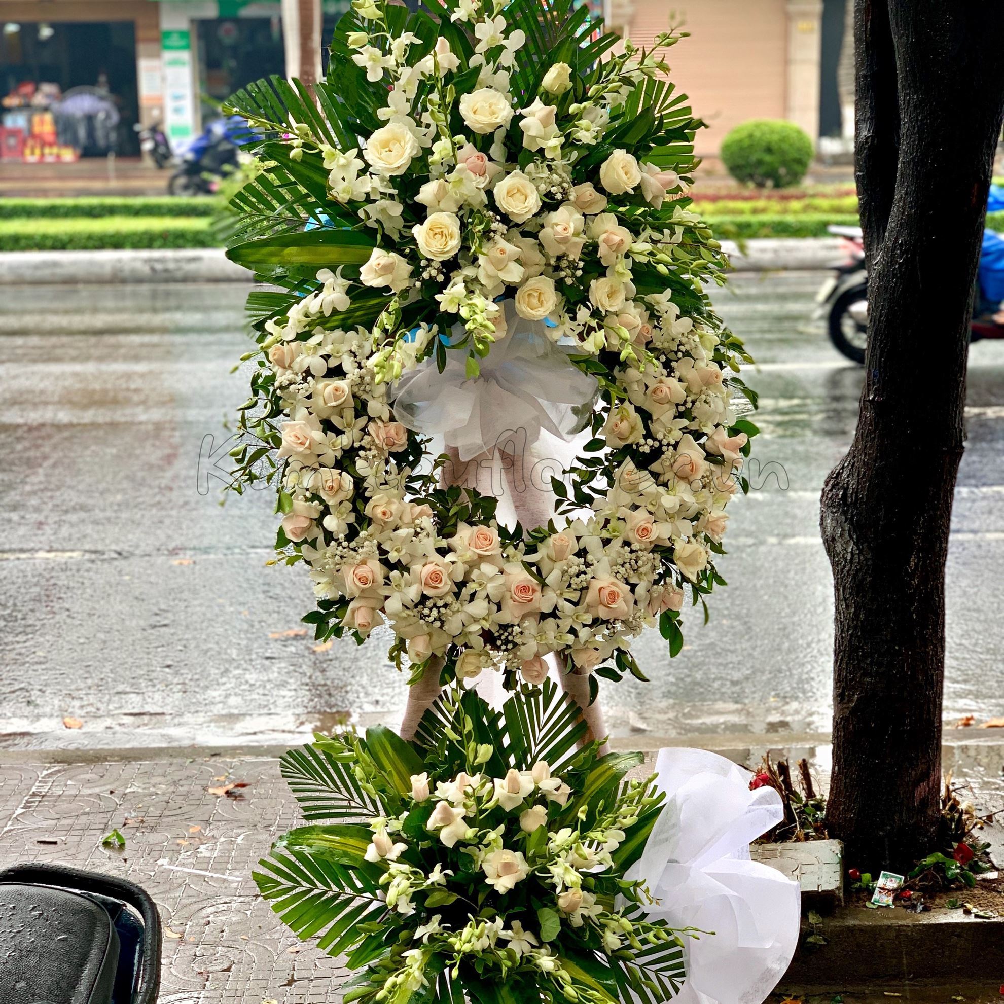 Vòng hoa viếng hồng kem, lan trắng-KV38