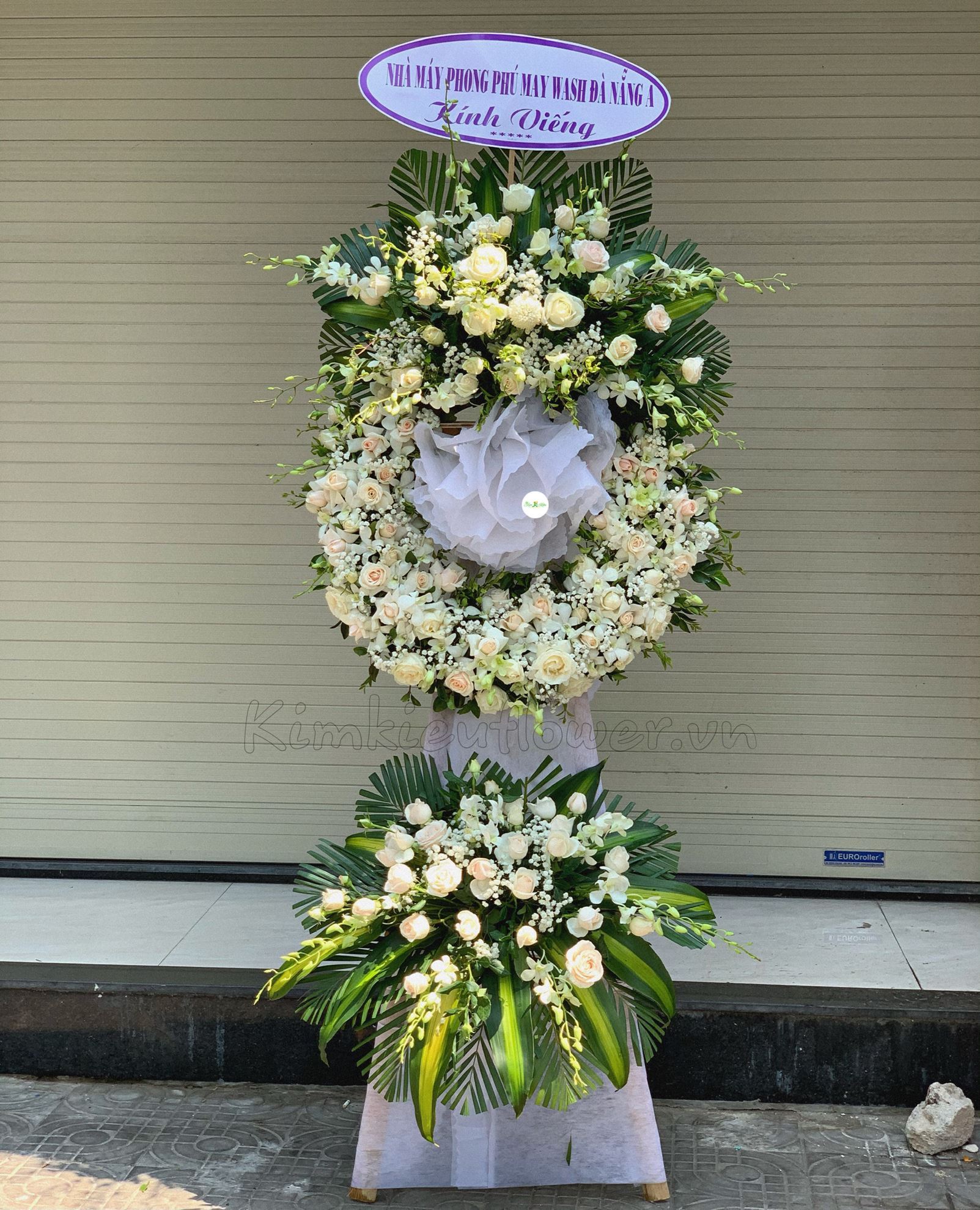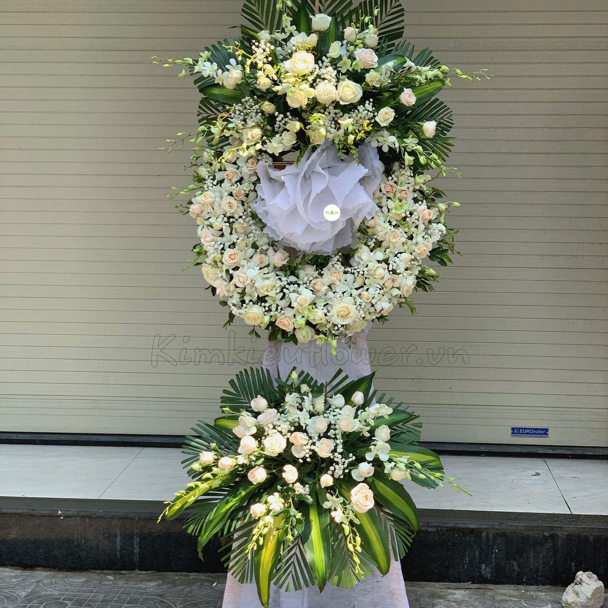 Vòng hoa viếng hồng kem, lan trắng - KV73