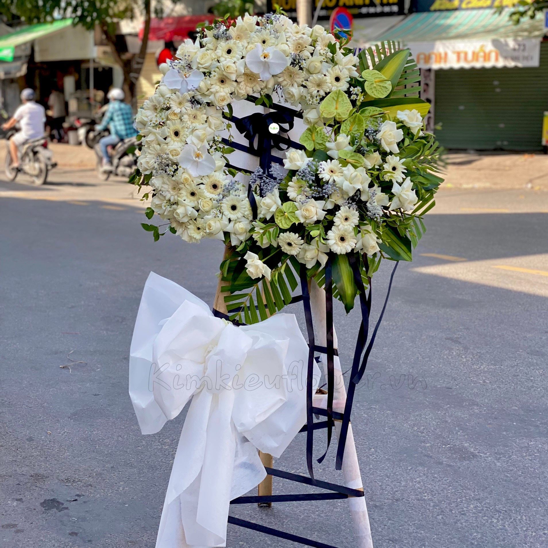 Vòng hoa viếng hồng trắng, đồng tiền - KV92