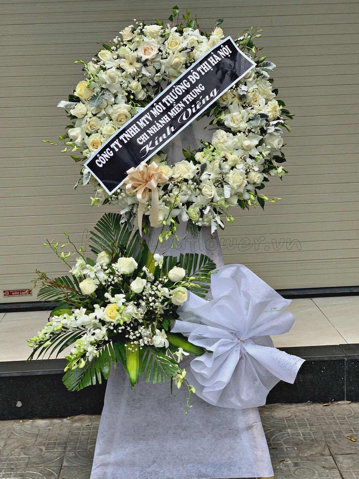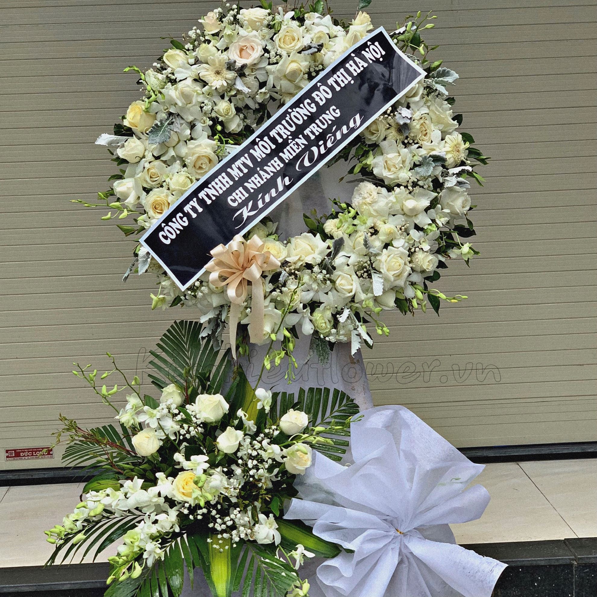 Vòng hoa viếng hồng trắng, đồng tiền trắng - KV75