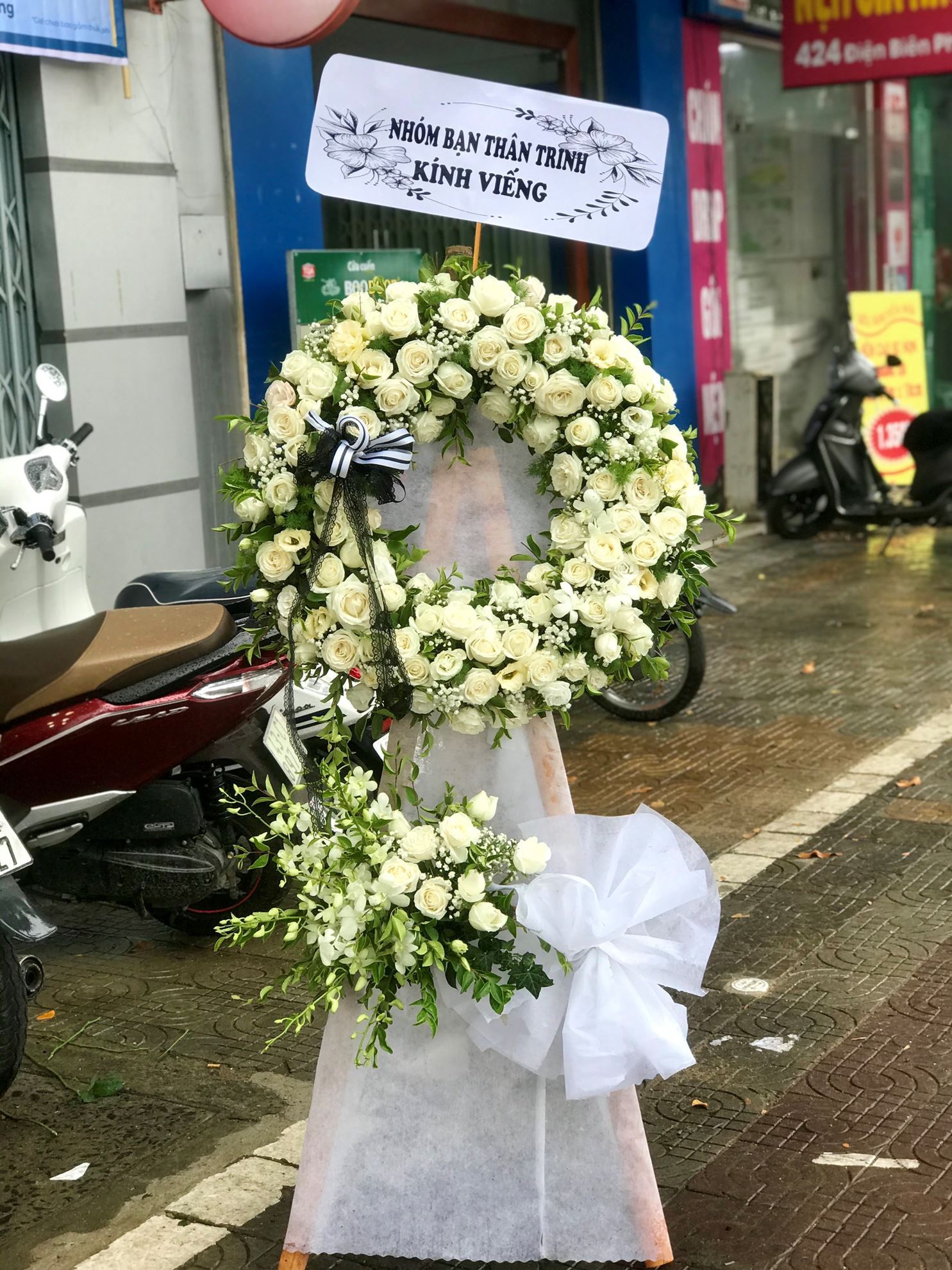 Vòng hoa viếng hồng trắng, lan trắng- KV03