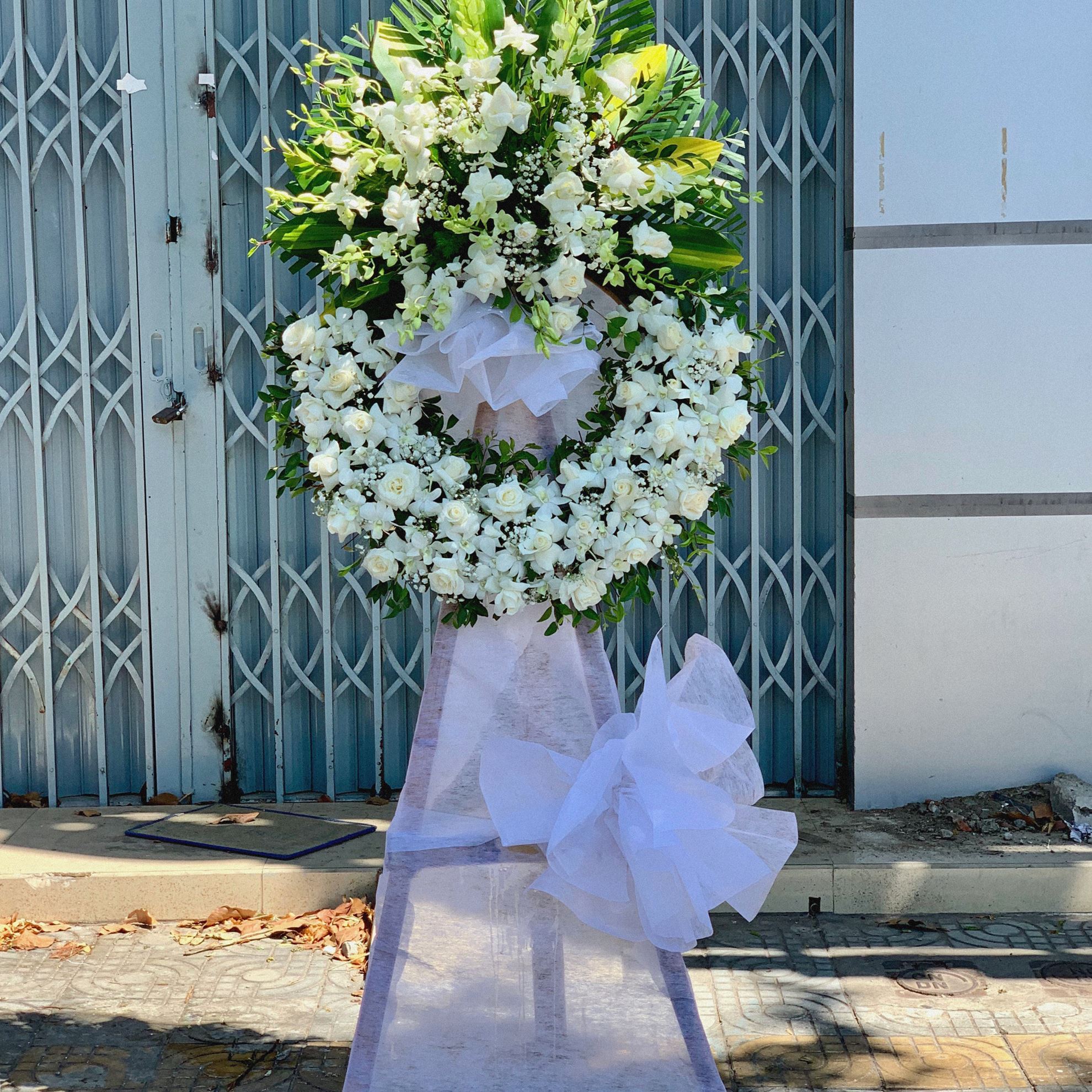 Vòng hoa viếng hồng trắng, lan trắng- KV32