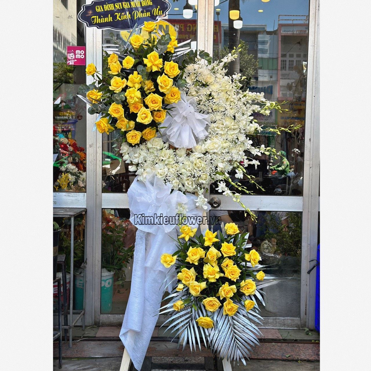 Vòng hoa viếng hồng vàng, cúc trắng - KV154
