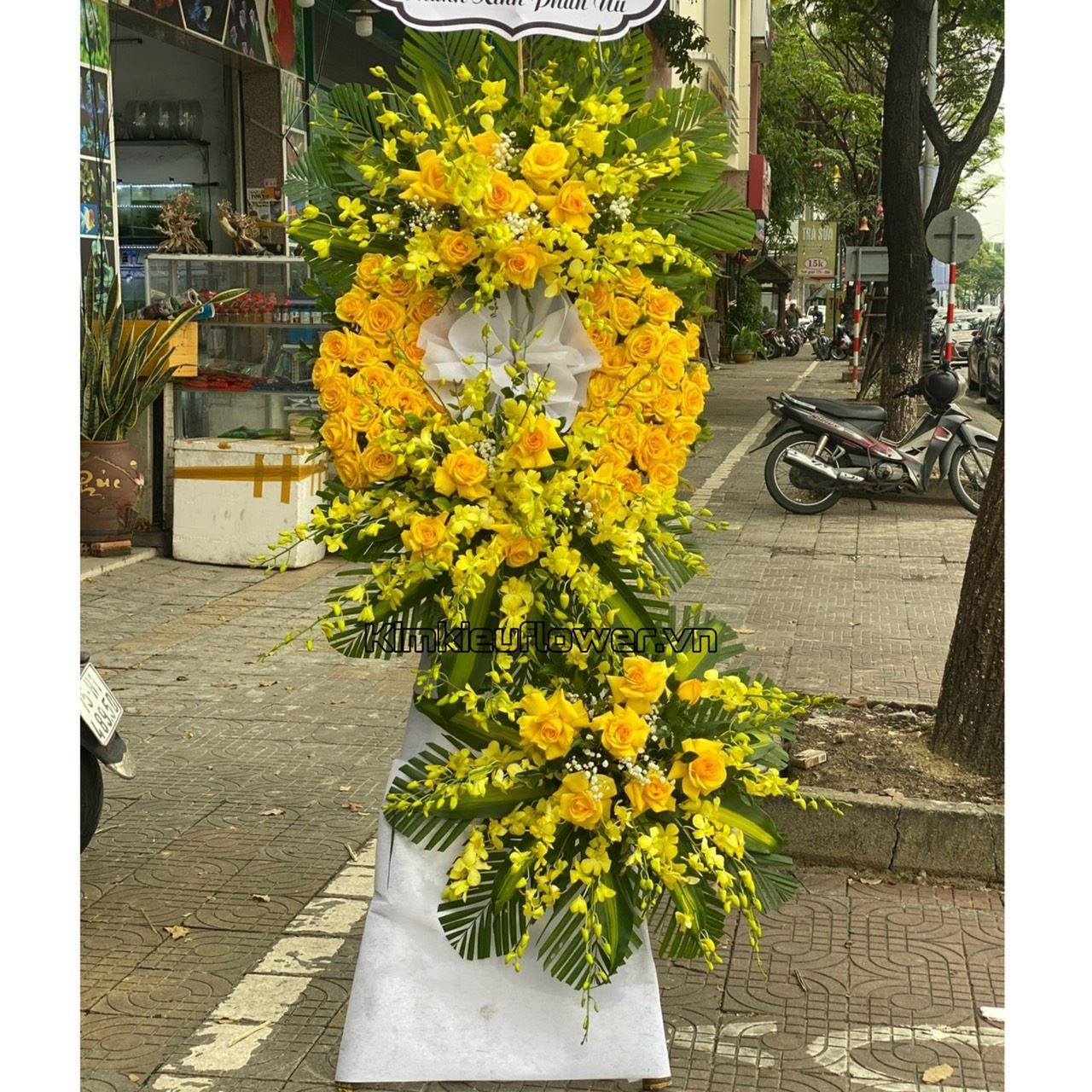Vòng hoa viếng hồng vàng, lan vàng - KV134