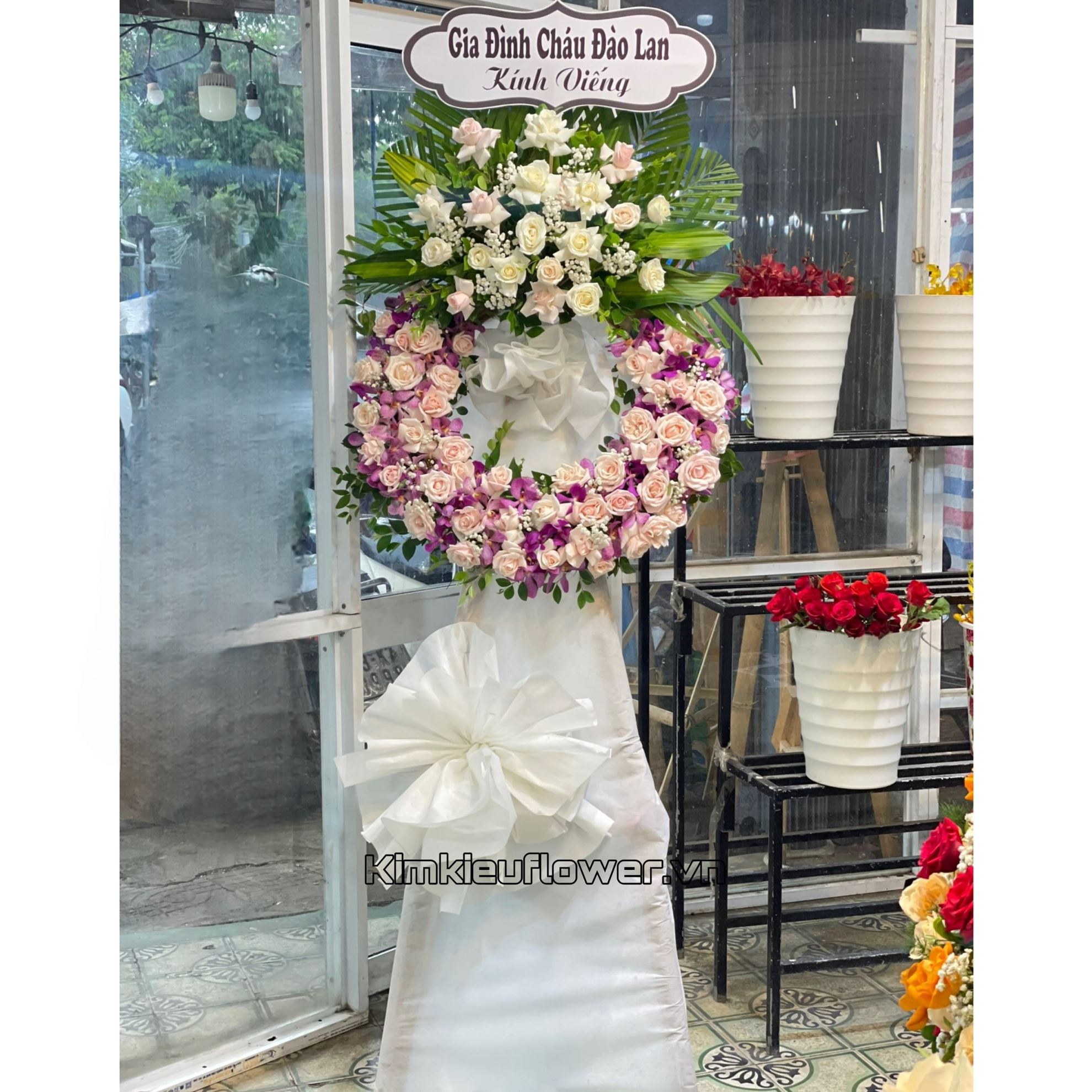 Mẫu KV157 gồm các loại hoa: + hoa hồng kem + hoa hồng trắng + lan tím - Liên hệ KIM KIỀU FLOWER để tư vấn thiết kế mẫu hoa theo yêu cầu bạn nhé!