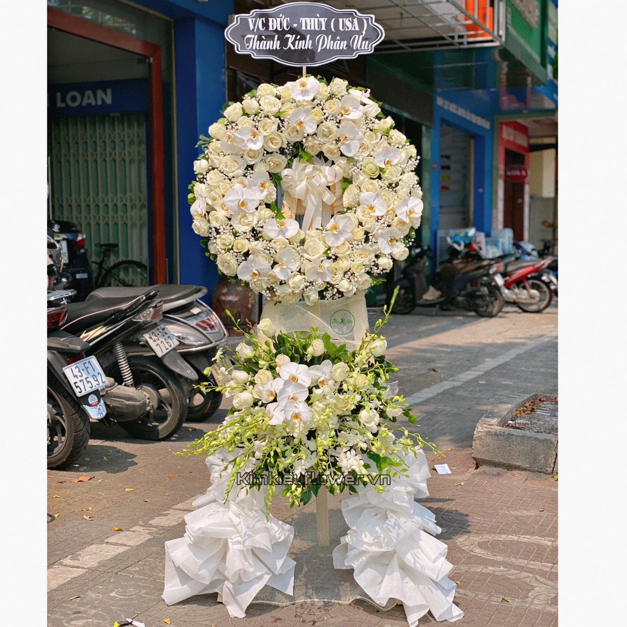 Vòng hoa viếng lan hồ điệp, hồng trắng - KV150