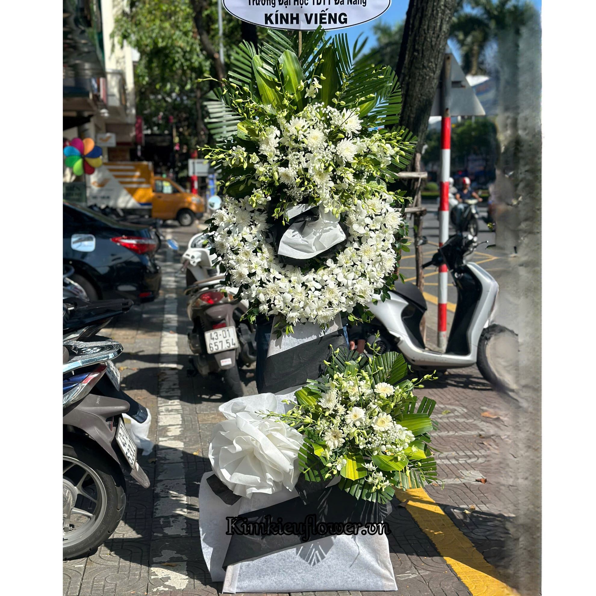 Vòng hoa viếng lan trắng mix cúc trắng - KV257