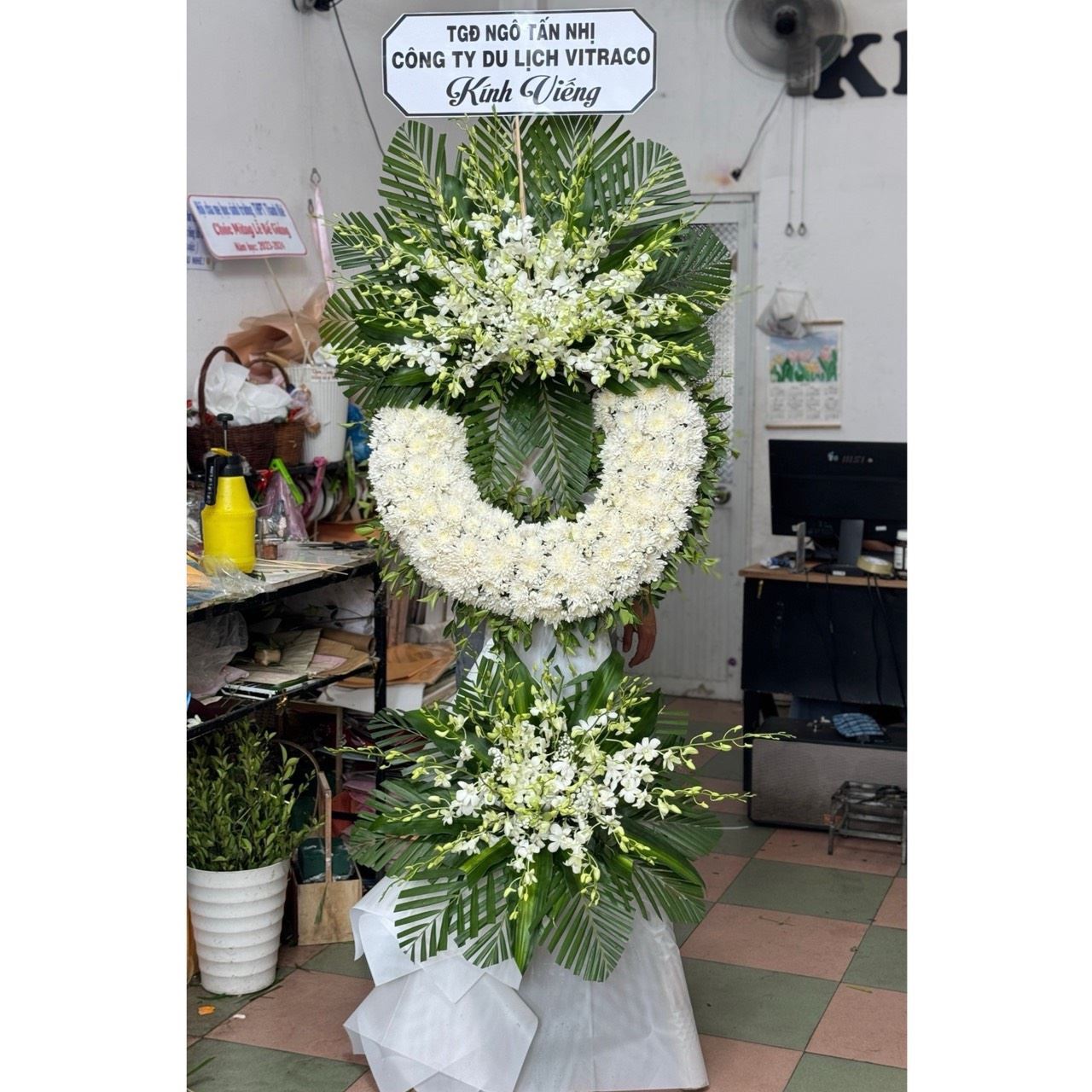 Vòng hoa viếng lan trắng mix cúc trắng - KV203