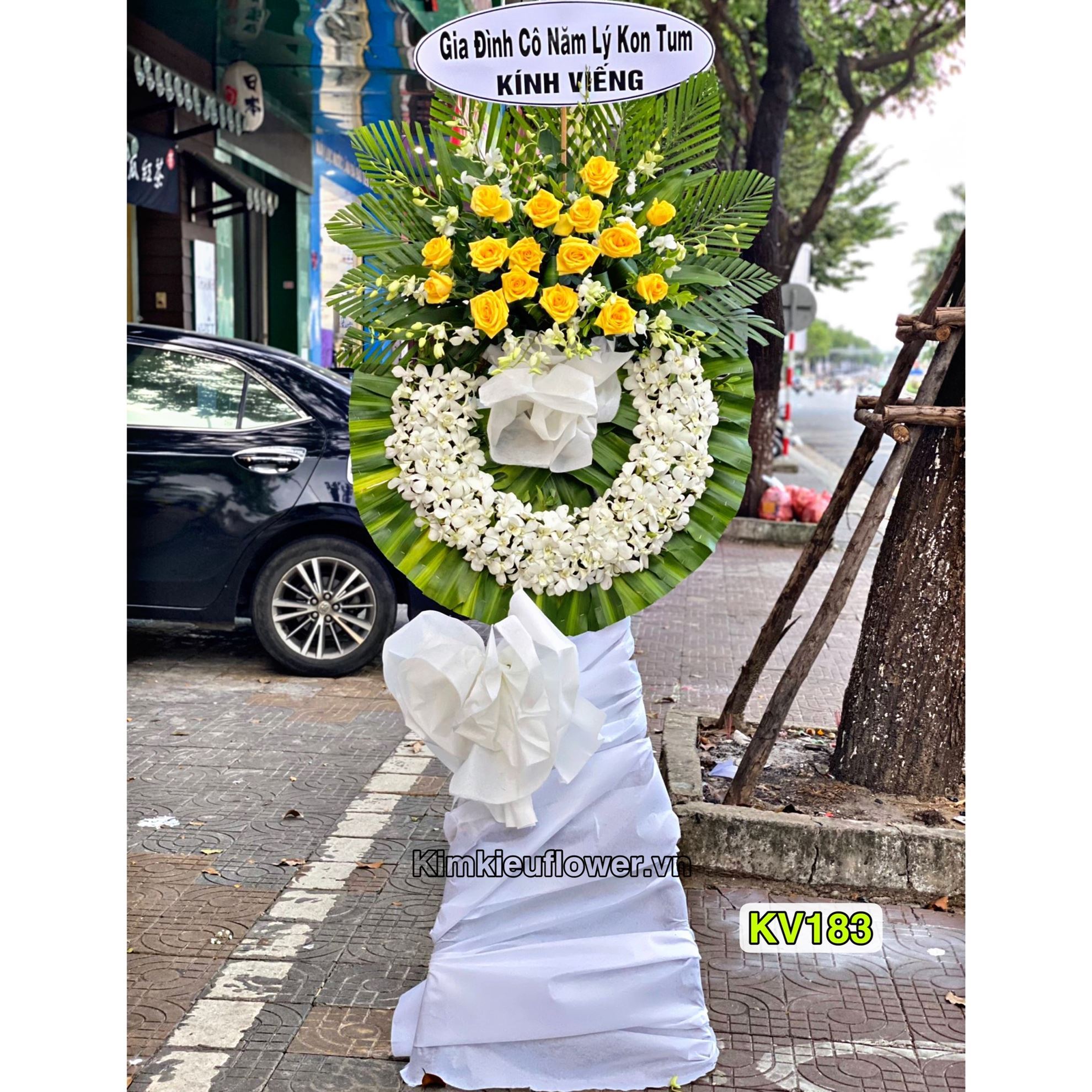 Vòng hoa viếng lan trắng mix vàng - KV183
