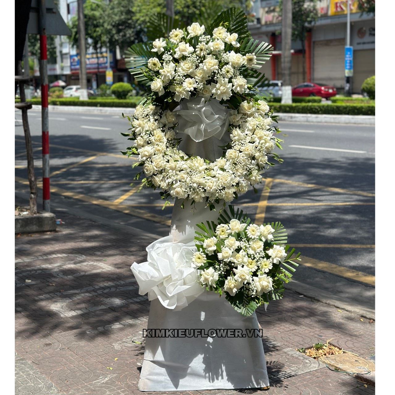 Mẫu KV214 gồm các loại hoa: + hoa hồng trắng + đồng tiền trắng + và các lá phụ khác - Liên hệ KIM KIỀU FLOWER để tư vấn thiết kế mẫu hoa theo yêu cầu bạn nhé!