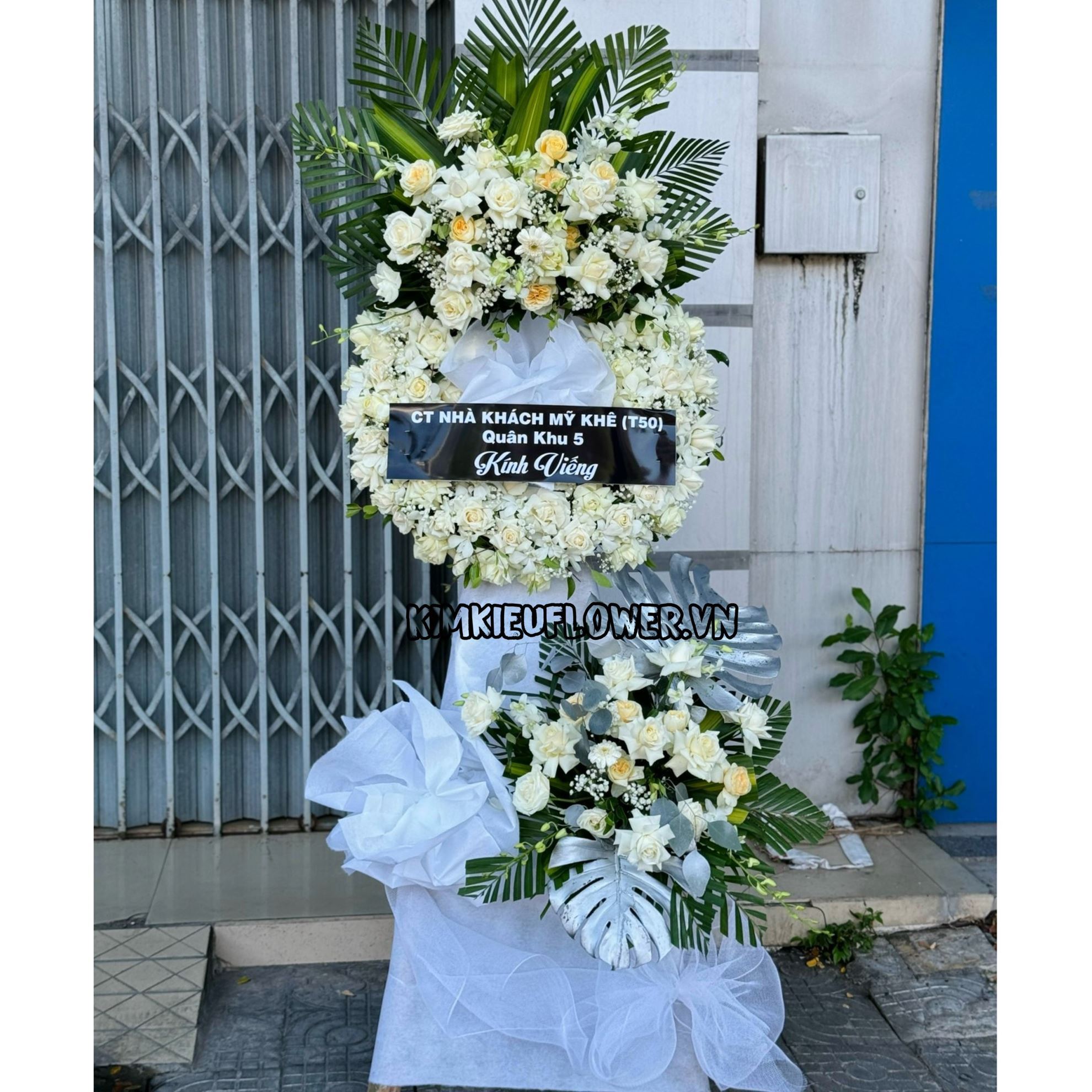Vòng hoa viếng tone trắng - KV235