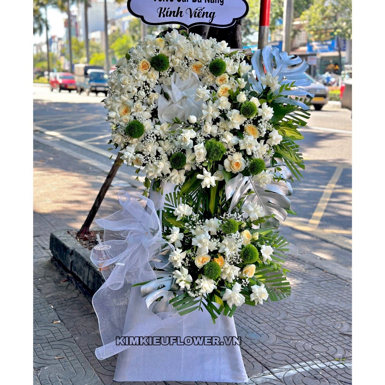 Vòng hoa viếng tone trắng mix green wicky - KV215