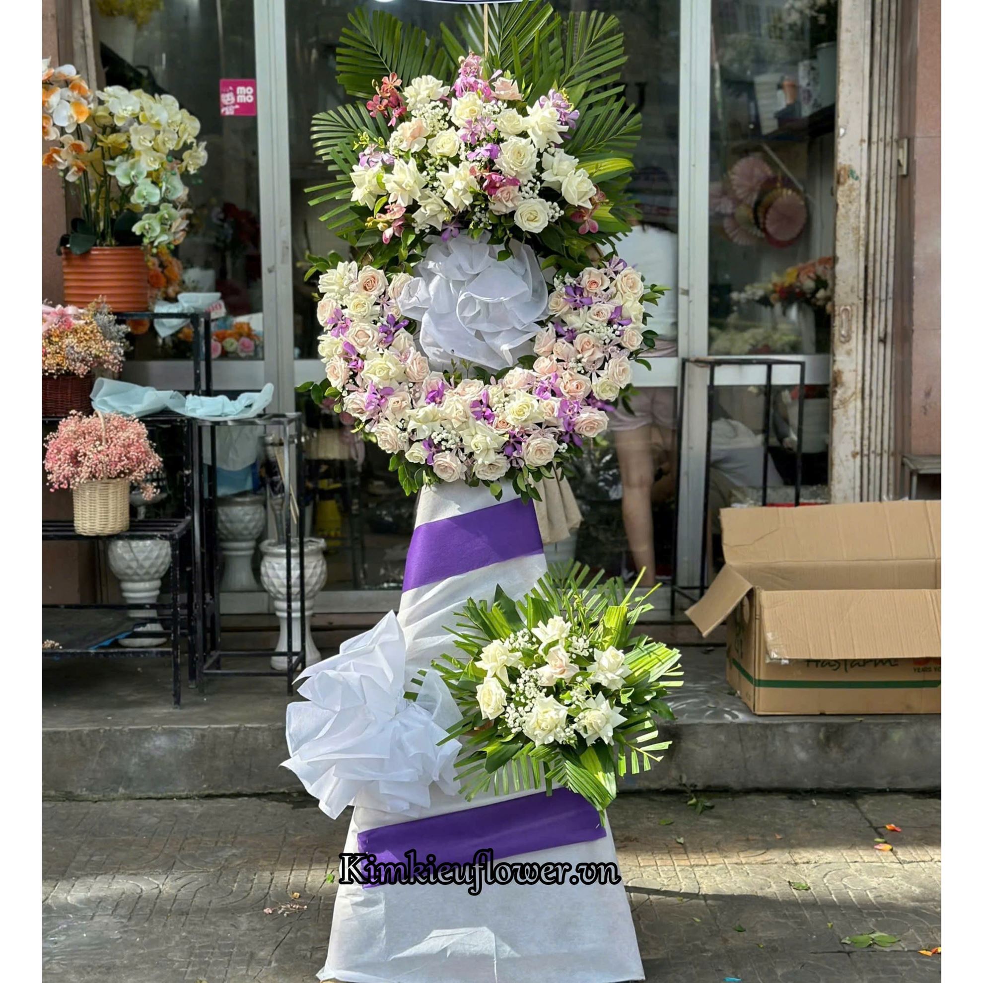 Vòng hoa viếng tone trắng tím - KV249