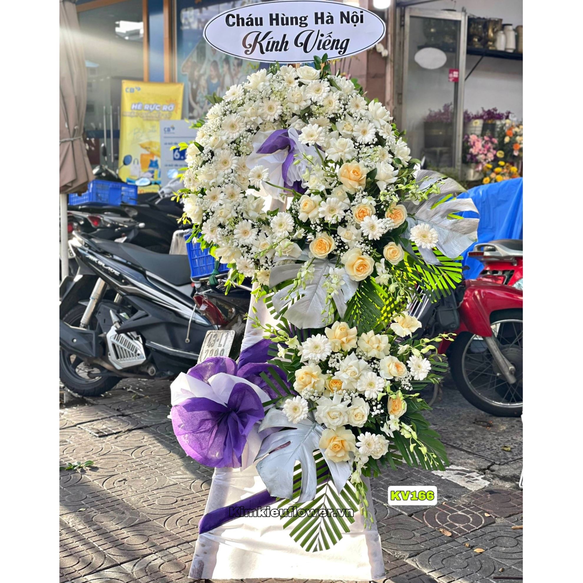 Mẫu KV166 gồm các loại hoa: + hoa hồng trắng + hoa victor vàng + đồng tiền trắng + và các hoa,lá phụ khác - Liên hệ KIM KIỀU FLOWER để tư vấn thiết kế mẫu hoa theo yêu cầu bạn nhé!