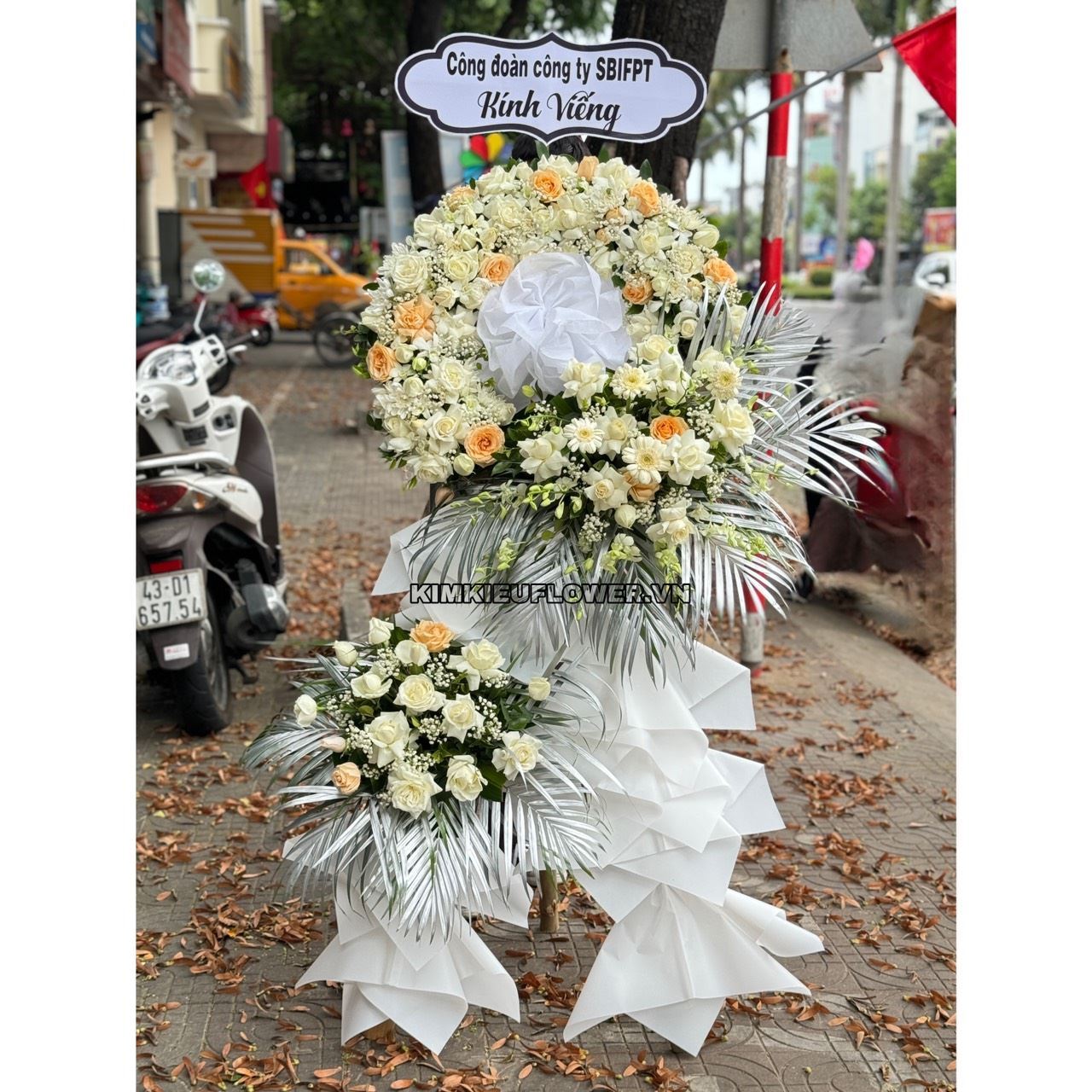 Vòng viếng tone trắng mix mỡ gà - KV206